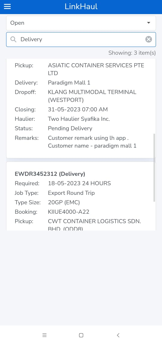 In order to do so, first login into your Linkhaul Customer App, and select any container that is pending for delivery:
